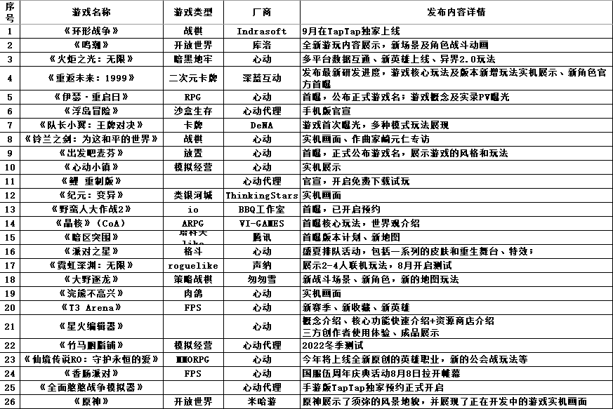 7月23日,TapTap开展了自己的游戏发布会,展现了多达26款新老游戏,其中包括《全面憨憨战争模拟器》《环形战争》这样的平台独占产品。强大的游戏阵容让我们看到了TapTap作为国内大型手游平台的深厚底蕴,这次的发布会也更加明确了TapTap的自我定位:一个阵容强大、功能齐全的精品手游平台。