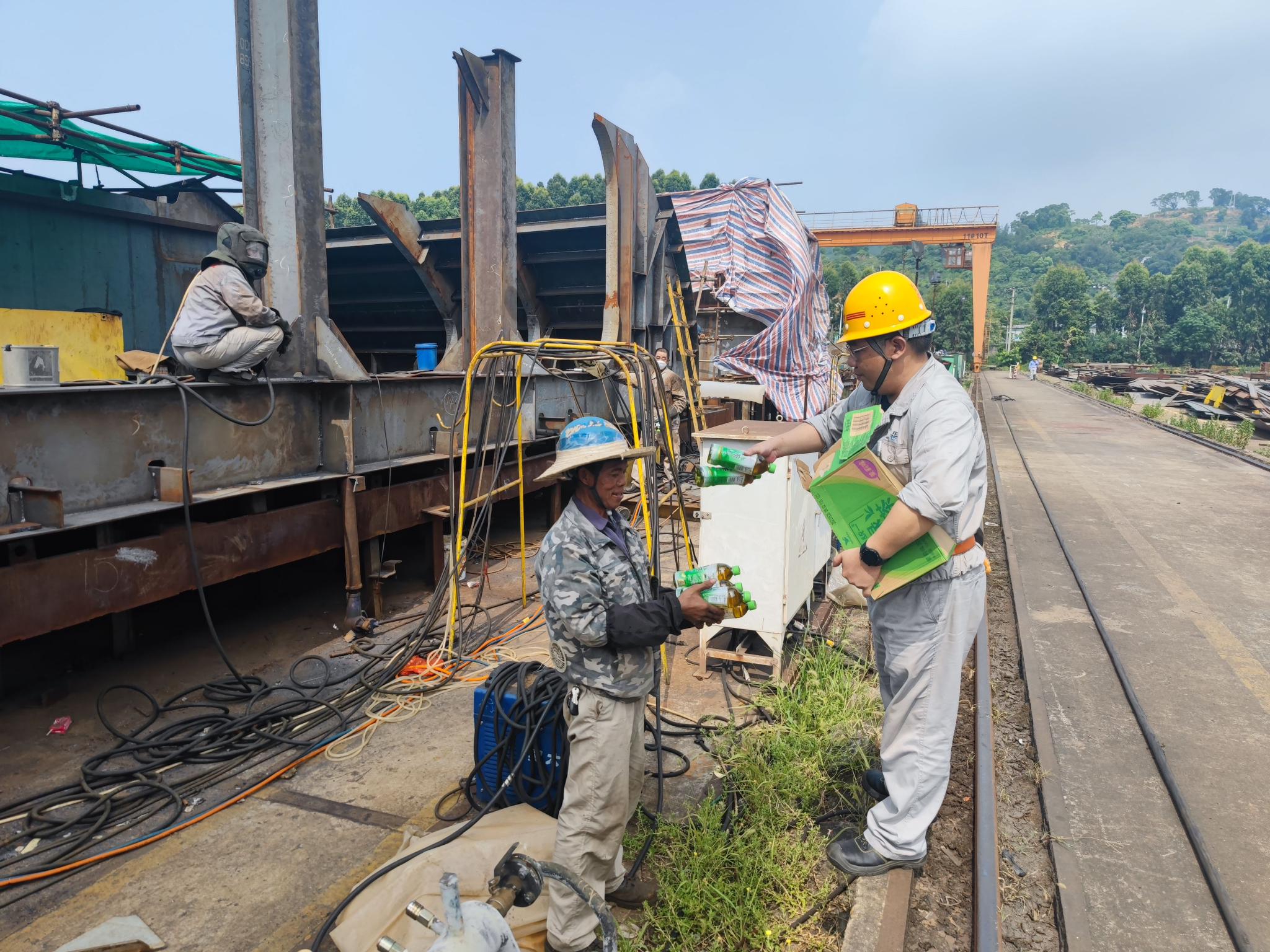 2022年7月26日,福建省连江县琯头镇粗芦岛的马尾造船厂举办“关爱职工,夏送清凉”慰问活动。 新华社发