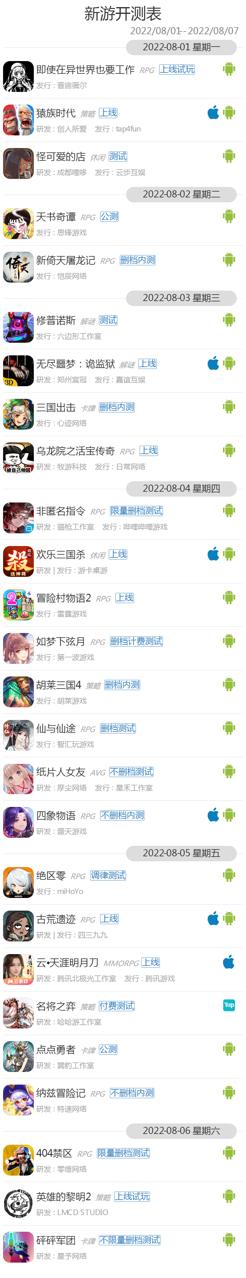 8月1日—8月7日共有26款游戏开测|GameRes