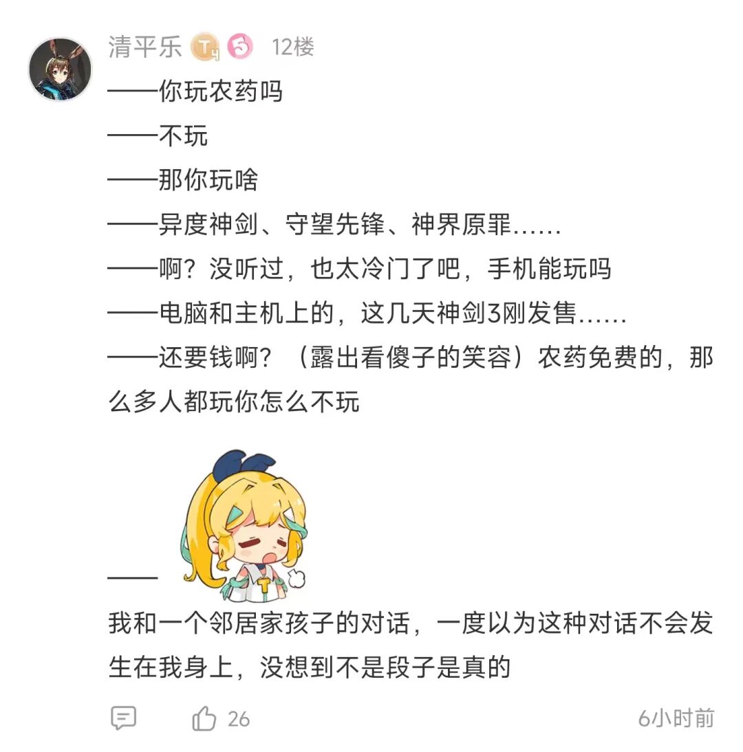 游戏没有高低贵贱,但是见识有长有短,无知不是问题,自大才是,对其他人的爱好保持起码的尊重是高尚的品德。