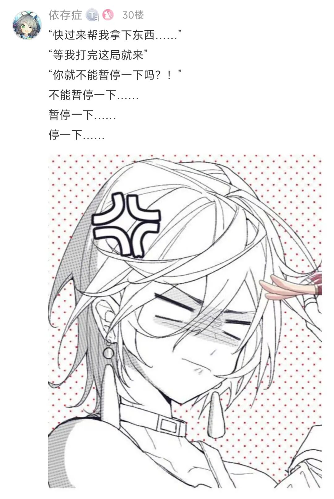 其实“你就不能暂停一下吗?”这个问题的关键,并不是你玩的游戏能不能暂停,而是价值观的不同。在玩家的眼中,不能“暂停”的原因 也许 是一场关键的定级赛,也许是剧情正要发展到高潮,也许是正在和工会的兄弟们打副本的最后一个BOSS。但是在问出这个问题的人来看,ta觉得游戏只是可有可无的娱乐,吃饭也好、帮忙拿东西也好,都是比打游戏重要得多的事情。如果这个世界能多一些理解和尊重的话,该有多和谐。
