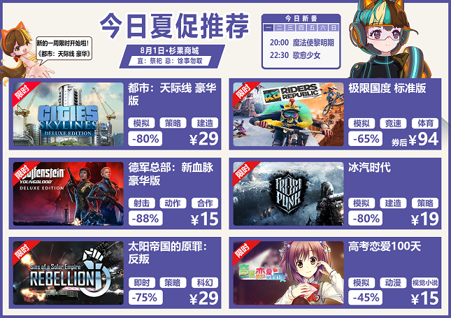 如果说以上内容还没有帮您找到心仪游戏的话,不妨来浏览一下当日闪促或者前往杉果商城看看吧!