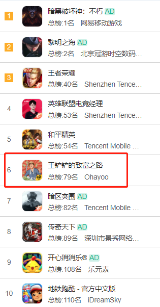 事实上,在以下载量为初始导向的产品池里,不仅有中重度休闲游戏与轻量休闲游戏同台竞争,主流重度游戏更是占据了头部席位,而Ohayoo则能以轻量休闲游戏定位在其中参与竞争。