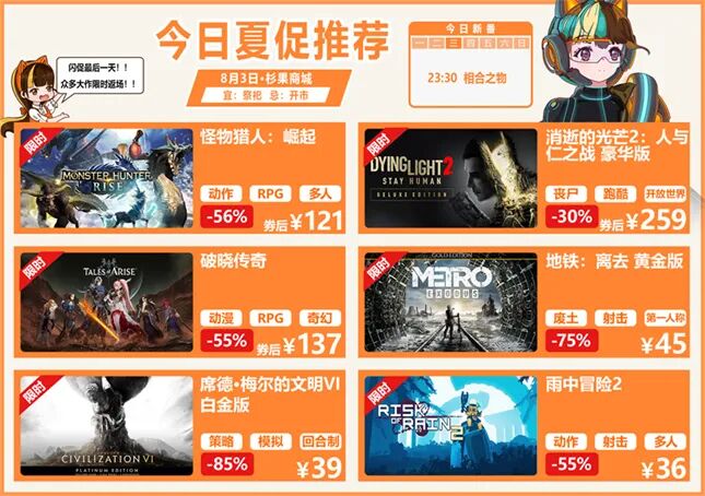 注意,这些游戏仅限 8 月 3 日当天限时,4 日中午就会涨价!