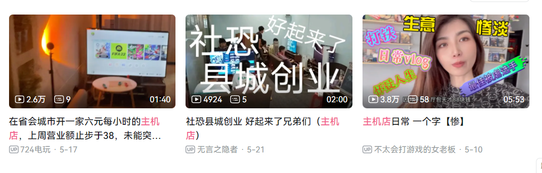 考虑到B站是国内玩家的一大聚集地,很多店主会来此开设账号成为视频博主,记录自己开店历程的同时,也方便招揽一些顾客。这里和小红书完全是两种画风,去掉了滤镜,大多数店主的现状显而易见:用两个字形容就是“惨淡”。