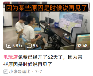 这场结果几乎注定的烧钱活动进行到现在,已经发展到“小张为补贴免费电玩店去外地打工的阶段”。长期关注他的网友逐渐发觉,作为一名店主,他对B站账号的关注远超店铺本身,已从几千涨到2万粉丝的评论区里大家态度也变得讥讽。不过那家免费电玩店依旧开着,仍然在迷茫地等待着什么。
