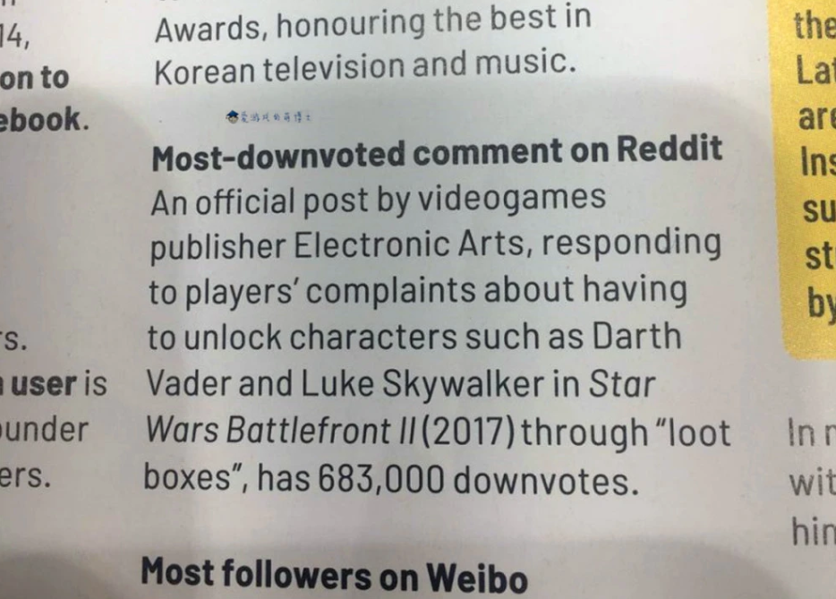结果有68.3万名玩家在Reddit上diss了EA官方,差评人数创下论坛纪录,还被收入了吉尼斯世界纪录