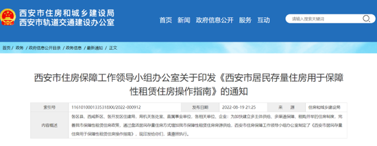 8月19日,西安市住房保障工作领导小组办公室印发《西安市居民存量住房用于保障性租赁住房操作指南》。指南在房源条件、认定流程、租赁管理等十四大方面,对西安市如何在存量住房转变成保障性租赁住房的具体操作做出了具体规定。