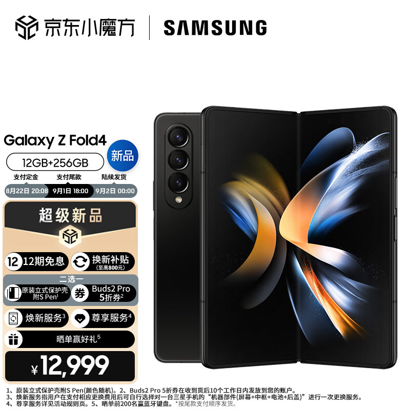 京东三星 Galaxy Z Fold4 铂萃黑 12999 元直达链接未经允许不得转载:新聚网 » 12999 元起,三星 Galaxy Z Fold4 国行发布:骁龙 8+、IPX8 防水,首发 Android 12L