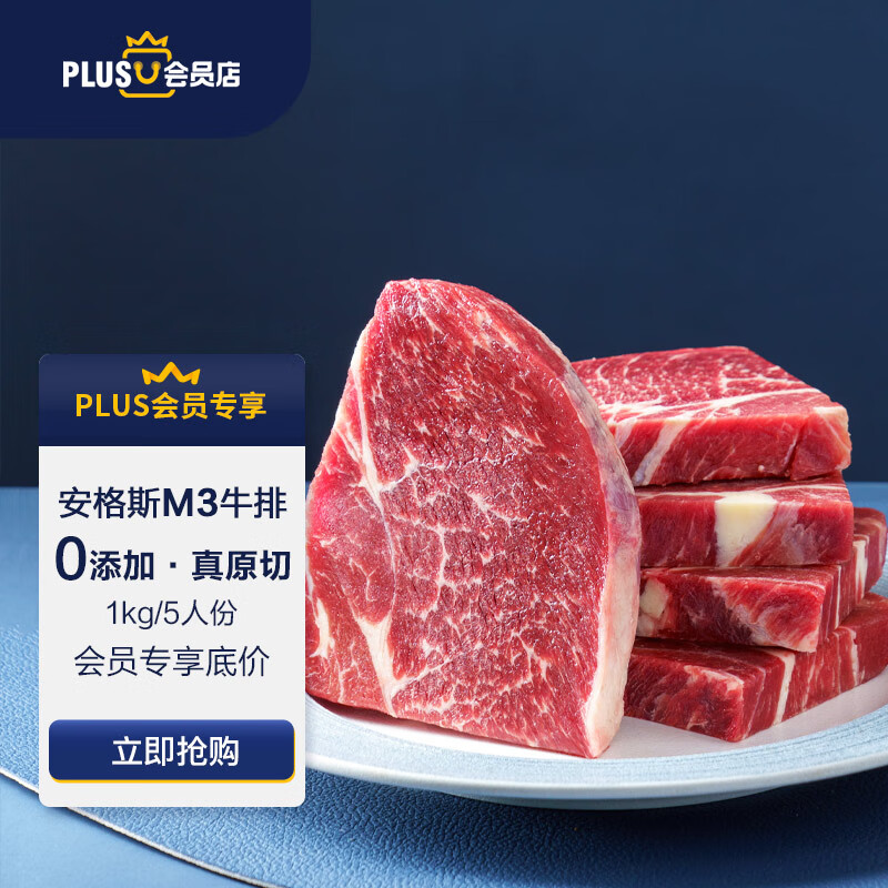 京东淳鲜四季 X 京东 PLUS 会员联名款 安格斯 M3 原切牛排套餐 1kg 上脑雪花牛排 118 元直达链接