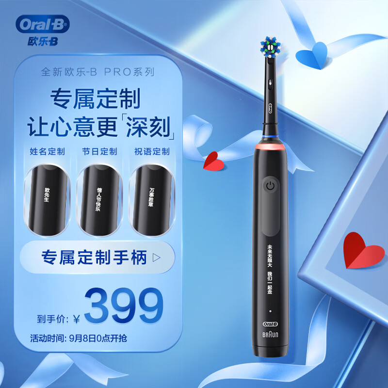 京东欧乐 B 电动牙刷成 3D 声波旋转摆动 Pro Ultra (武士黑) Pro4【定制版】券后 399 元领 5 元券