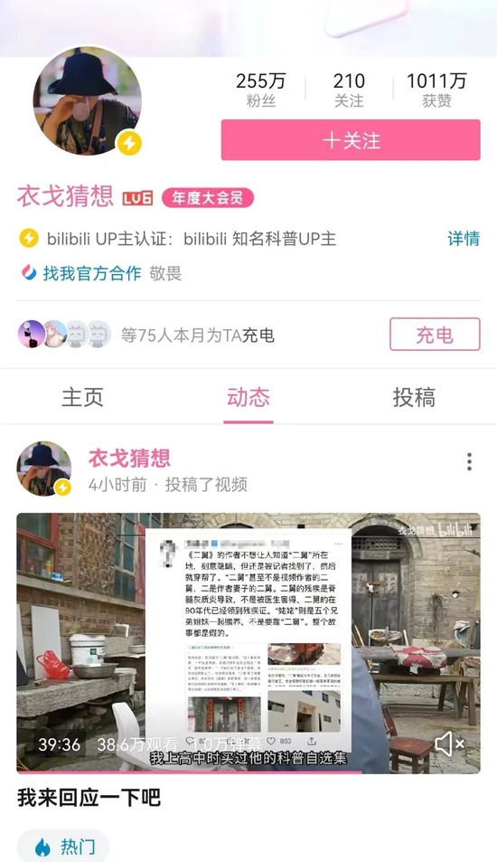 9月20日,UP主“衣戈猜想”发布时长39分钟的视频《我来回应一下吧》,对网上有关二舅的九大争议,主要包括身份造假、残疾证、独自赡养老人等,他均在视频中一一给出回应。