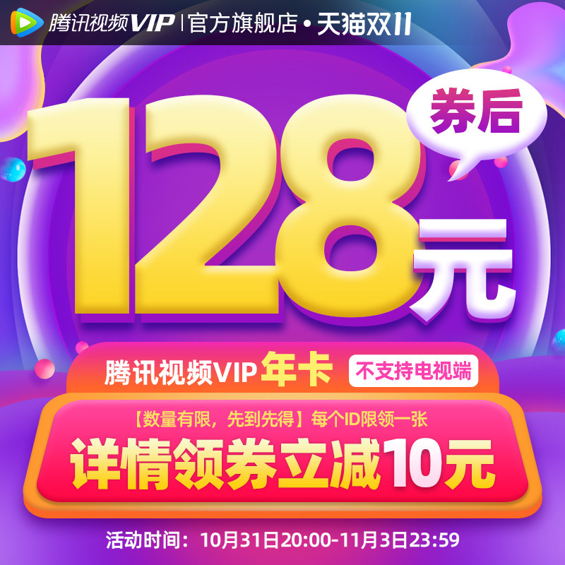 天猫 QQ 超级会员 年卡商品详情页领 10 元补贴券券后 110 元直达链接腾讯视频 VIP 会员年卡日常 258 元,本次大促 128 元(5 折):