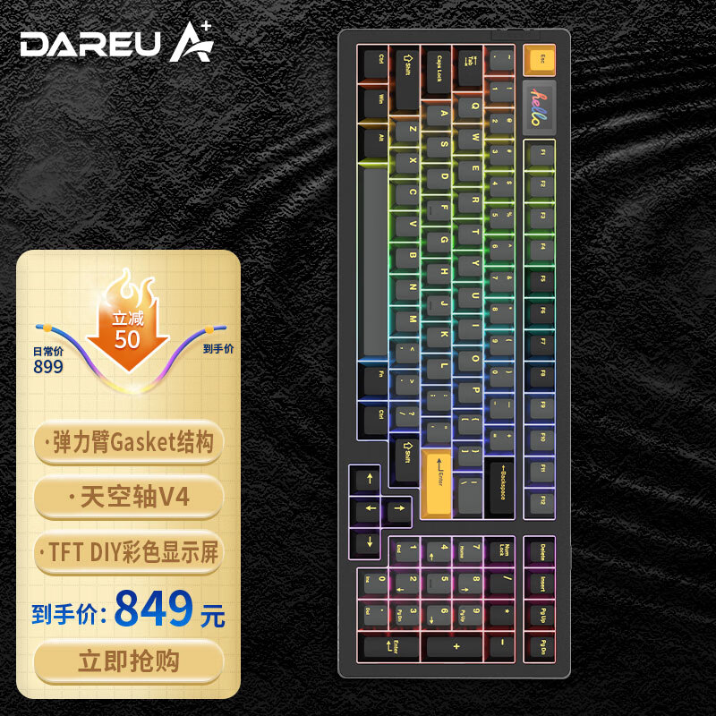 京东达尔优(dareu)A98pro 机械键盘三模热插拔 849 元直达链接未经允许不得转载:新聚网 » 达尔优 A98 Pro 机械键盘上架:天空轴 V4 / 彩色显示屏,899 元