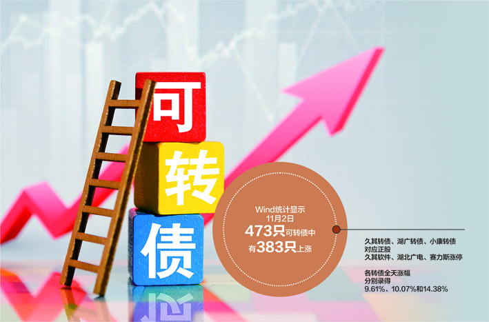 Wind统计显示,11月2日,473只可转债中有383只上涨,久其转债、湖广转债、小康转债对应正股久其软件湖北广电赛力斯涨停,各转债全天涨幅分别录得9.61%、10.07%和14.38%。