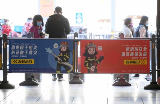 疏导隔离围栏上也张贴了消防安全知识。海淀消防供图