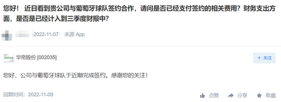 11月9日,华帝股份在投资者互动平台表示,公司成为葡萄牙国家足球队的赞助商。这不是华帝股份第一次“参与”世界杯,早在2018年“法国队夺冠华帝退全款”案例中,公司就曾在世界杯期间撬动10亿元销售奇迹。此次赞助葡萄牙队,华帝股份能否再度复制营销传奇?
