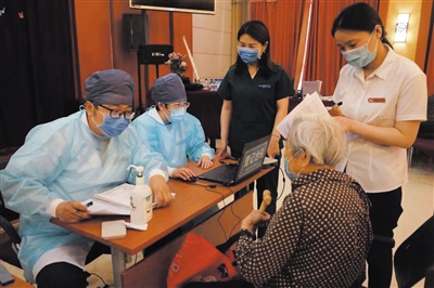 丰台各街镇也都开通了老年人爱心接驳车,由社区干部全程陪护,并有急救人员应急保障。接种小分队还专门为行动不便的高龄老人提供从上门评估到接种的“一站式”服务,同时增设“家庭医生服务岗”,让老人和家属放心。