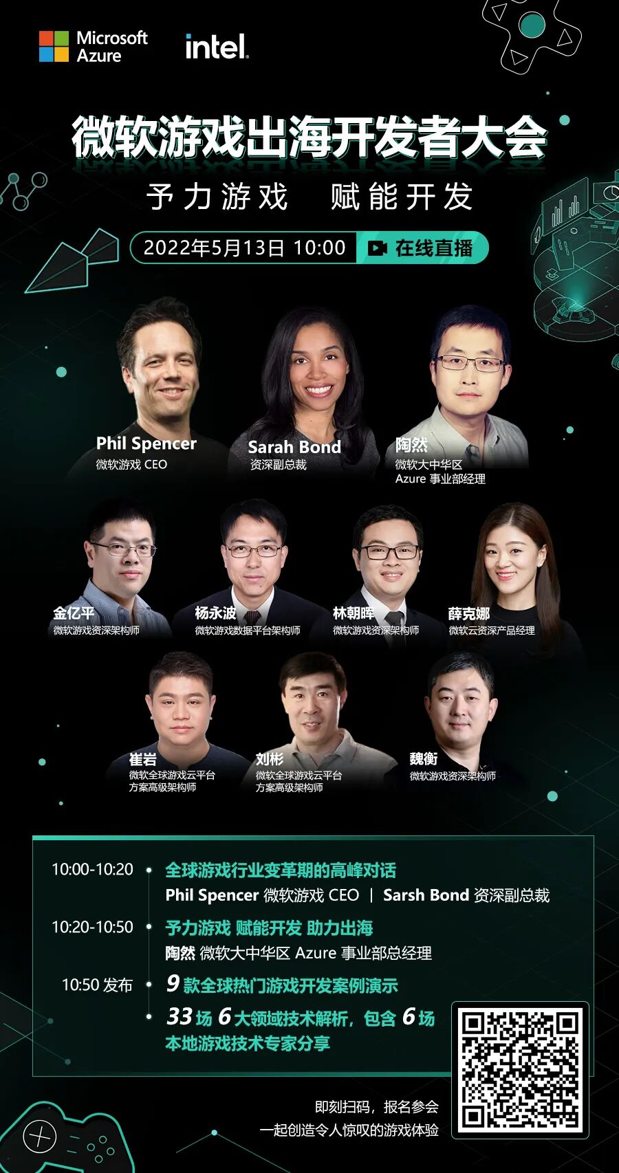 微软致力于赋能游戏开发者在全球任何地方、为各个平台的玩家创造更好的游戏。即将在 5月13日10点 线上直播的微软游戏出海开发者大会,作为 GDC 的中国定制版,将会发布 33场深度技术会谈 (其中包括 6场本地游戏专家分享 ), 9款全球顶尖游戏的开发经验展示 ,主题涵盖图形学、性能优化、云端开发/制作、云游戏、增强游戏的可访问性、最大化游戏的总价值等等。同时有 2场 由微软游戏 CEO Phil Spencer 带领的应对行业变革的高峰对话,讨论游戏开发转变的趋势以及微软游戏的想法,同时也会介绍微软云支持游戏开发的全新产品和项目发布。