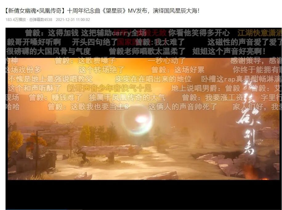 而在去年12月,游戏转而尝试另一种截然不同的方向:即联手凤凰传奇,运用多种乐器创作了气势磅礴的国风歌曲《望星辰》。这首风格鲜明的音乐很快吸引不同圈层用户的关注,相关视频的B站播放量迅速突破百万。