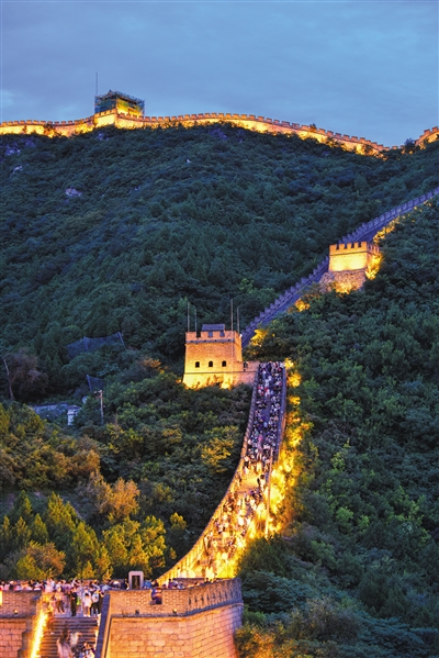 8月27日,居庸关长城景区开展夜游长城活动。12月29日,昌平区政府工作报告透露,昌平将提升国家全域旅游示范区能级,开发一批文创产品,把昌平打造成“微度假”目的地。 资料图片/IC photo