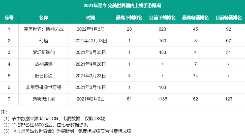 在这几款产品以外,轻松竖版3D手游《完美世界:诸神之战》在还原“完美世界”IP的同时,采取竖屏形式,类似挂机放置的轻松游戏体验也获得了一些玩家的认可,算是取得了一些成绩,上线不到半年,目前徘徊在畅销榜百名左右,未来的长线运营或许是他们需要解决的问题。