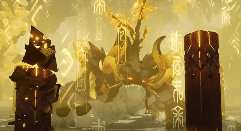 《尘世闲游》立住「钟离」的辨识度后,其用旋律和乐器在《创龙点睛》及《岩壑之崩》中的表现,便是在还原「钟离」与「若陀龙王」互相对峙的场景。