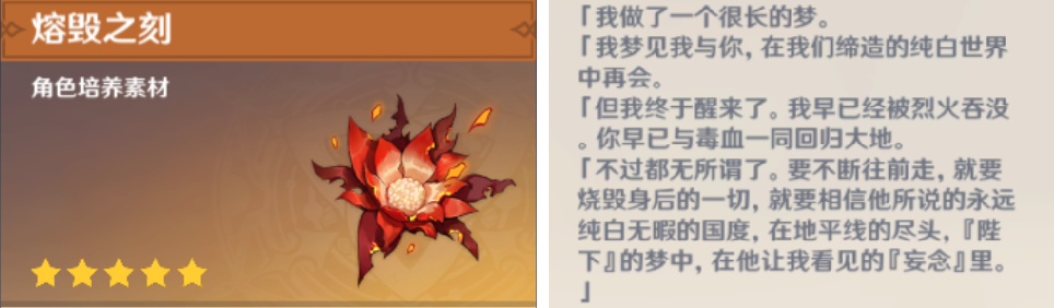 这倒不是我自己的主观臆想,因为如果你留意「女士」掉落的材料,其中,「熔毁之刻」的描述变对应了上述两个音乐片段: