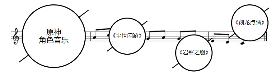 HOYO-MiX主理人蔡近翰在上述音乐比赛的采访中,提到工作室创作角色音乐的方式:音乐对角色是一个新的诠释,是一个再创作的过程, 往最基本的来说,便是「目的性」与「功能性」。
