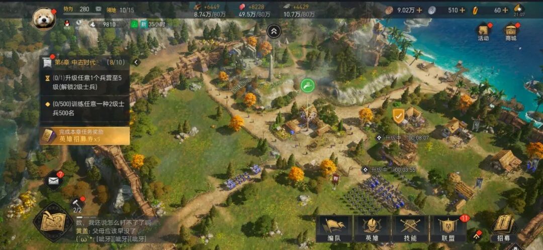 游戏主城与兵种同样是天美重点刻画的,毕竟这是玩家最常见到的画面。主城有针对不同文明的建筑样式,兵种也依据不同文明主题作出了兵装区分。不过这些都已经属于当下多文明SLG的主流配置,《重返帝国》只是做到了该有的都有,并没有特别之处。