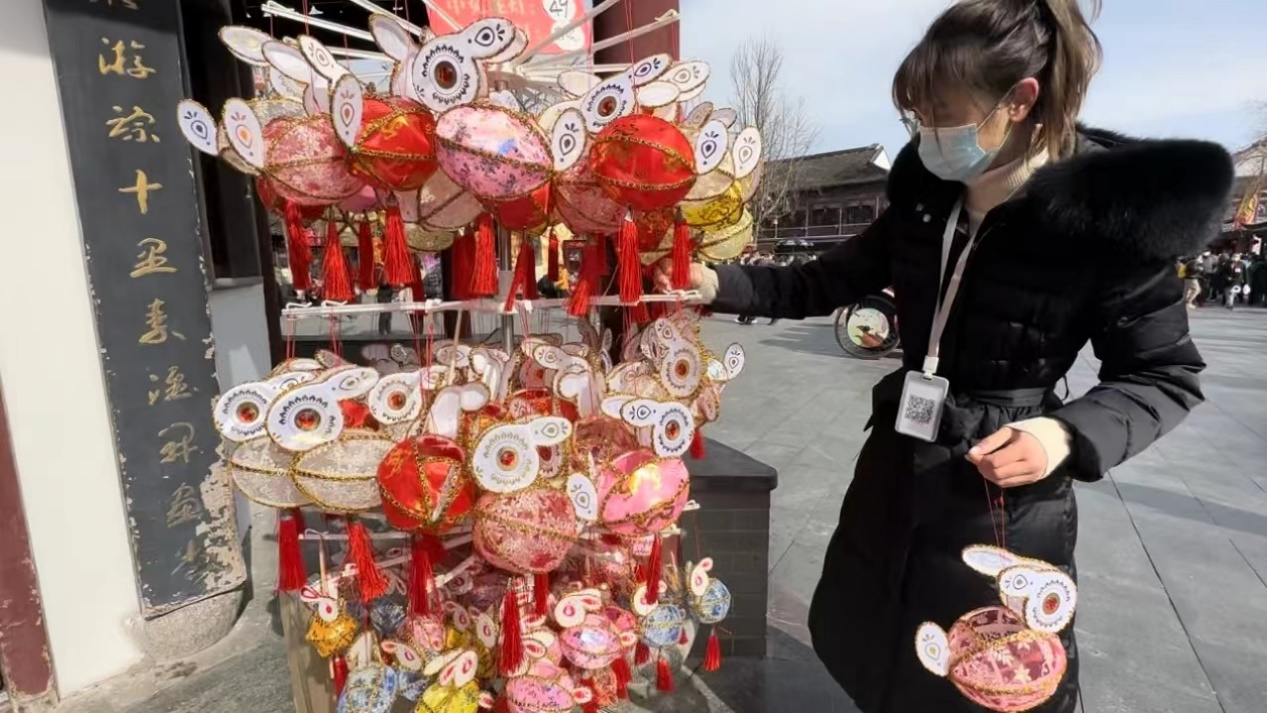 兔子灯、荷花灯、狮子灯、许愿灯……如果你从东门进入夫子庙景区,那最热闹的莫过于花灯市场。要问灯市最热卖的,一定是兔子花灯。今年是兔年,各式各样的兔灯登场亮相,从传统兔灯到时尚兔灯,从卡通漫画兔灯到定制款兔灯,颜色、品种可谓应有尽有,直叫人挑花了眼。据介绍,今年夫子庙花灯市场专门推出了精选摊位,邀请非遗手艺人前来展示并现场“带货”,效果不凡。