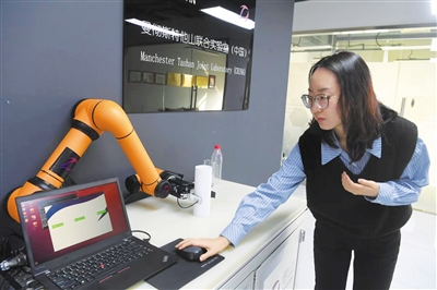 工作间里,嵌入式软件工程师甘庆华正在进行新产品的调试,面前的工作台上,一个微型“感应门”一样的框架上,安装着一个摄像头,框架旁边,则是一个机械臂,甘庆华介绍,这是一项触感和视觉结合的新应用,可以更完美地实现机械臂的生产功能,如今应用技术已经完成,正在进行最后的调试。