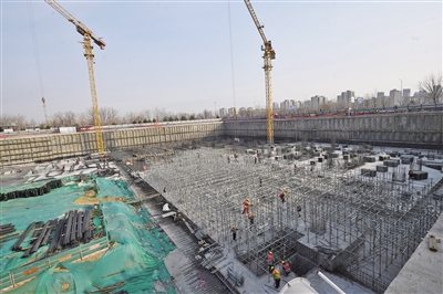北京城建集团项目经理王殿博介绍,通马路综合交通枢纽项目土护降工程已基本完工,A区、C区主楼区域内基础筏板已全部施工完成。预计今年9月30日完成主体结构,年底开始装修施工,2024年底竣工验收。
