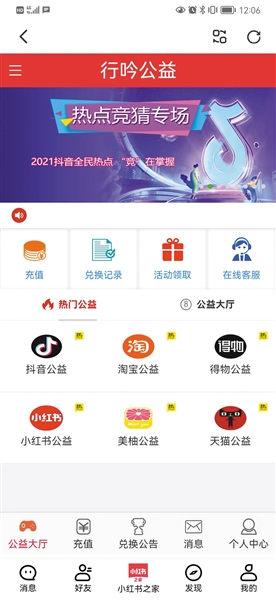 吴巧用接待员临时提供的一个程序码进入任务页面,发现里面有多个选项,包括小红书公益等多家网络平台公益项目。