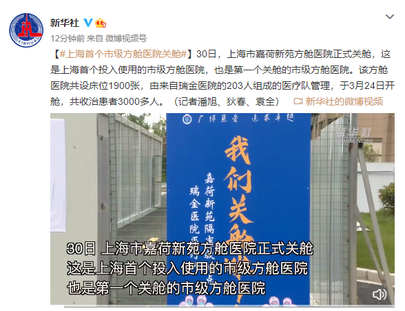上海首个市级方舱医院关舱