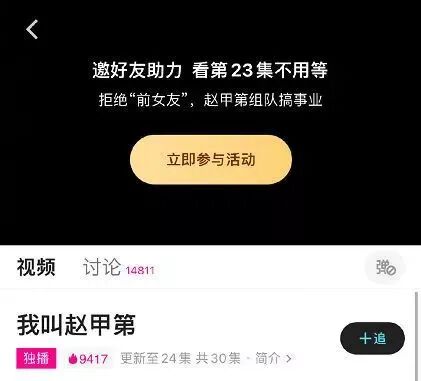 紧接着,在优酷追《我叫赵甲第》的朋友们也傻了眼。让我开会员我也开了,怎么我想提前看第23、24集,还要“邀请好友助力”?一集还得拉满5位不同的好友才能解锁?这画风怎么这么熟悉,确定不是从拼多多招了个产品经理,搞了个视频版 “ 砍一刀 ” ?