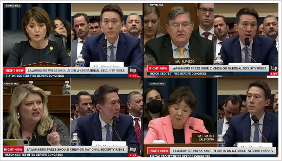 当地时间2023年3月23日,周受资代表TikTok出席了美国听证会。长达5个小时的质询中,讨论问题包括TikTok的信息安全、青少年保护、毒品信息以及程序上瘾等。
