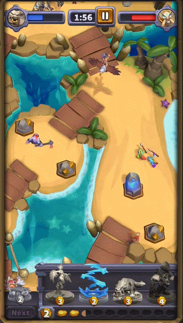 在战斗中,玩家们需要运用策略在战场上部署迷你战士们,随着时间流逝收集金币,或者通过采矿和开启宝箱找到财宝。