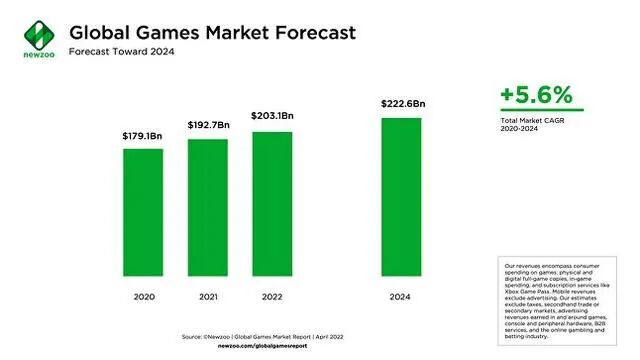 展望未来,该分析公司预测,2024年,全球电子游戏市场将带来2220亿美元的收入。