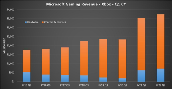 微软公布了第三季度(截止到2022年3月31日)财报:Q3总收入打破纪录,超过230亿美元,相比去年同期增长了32%。其中游戏收入相比去年同期增长了6%,从35.3亿美元增长至37.4亿美元。分析师Daniel Ahamd称赞该季度Xbox收入是有史以来最好的“非圣诞假期季度”。