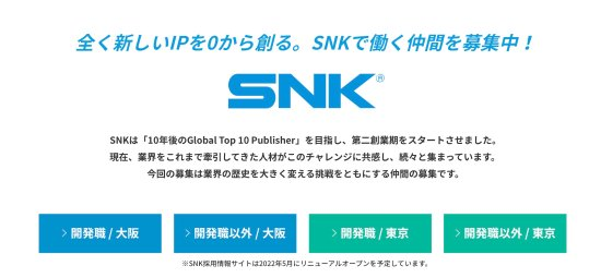 SNK开启大规模招聘:剑指十年后成为全球前十厂商