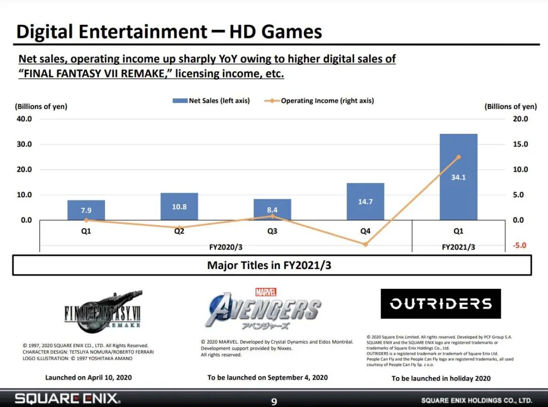 据财报披露,公司该财年最终亏损了 130 亿日元,是 2003 年 Square 与 Enix 合并后的最大赤字,原因是面向欧美的大型主机游戏销售停滞不前。此外还有 100 亿日元的特别损失,其中包括对游戏中止开发和重新评估的损失。