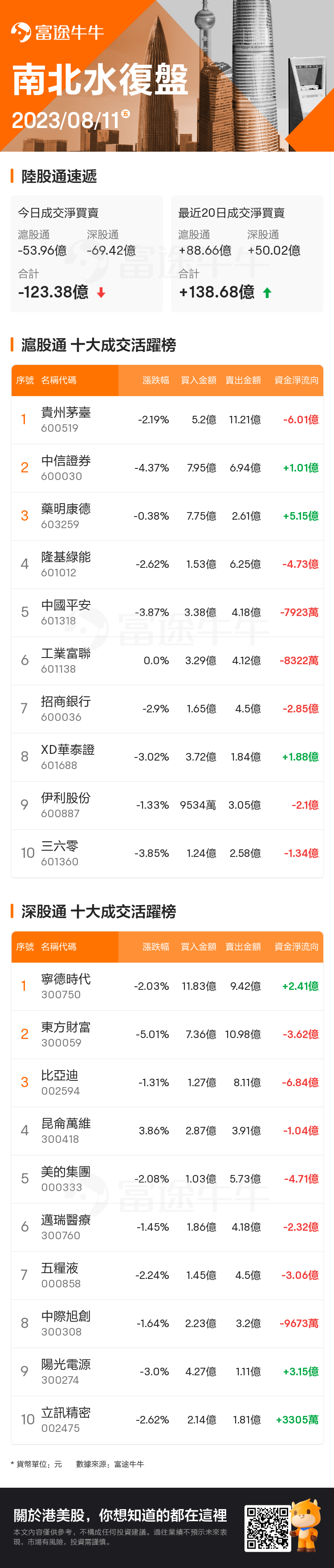 比亚迪(002594.SZ)、贵州茅台(600519.SH)、隆基绿能(601012.SH)分别获净卖出6.84亿元、6.01亿元、4.73亿元。