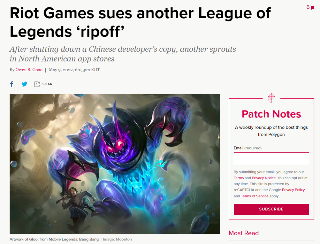 在起诉书中,拳头指控沐瞳科技旗下的游戏产品《Mobile Legends:Bang Bang》 (下文简称 MLBB) 抄袭了他们的《League of Legends: Wild Rift》 (中文名 英雄联盟手游) ,要求前者停止抄袭行为,并将游戏从移动商店中下架。