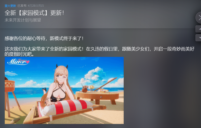 《Mirror 2》放出家园摄影模式和今年的更新计划,虽然暂时“不可以色色”,但是擦边球不能停。