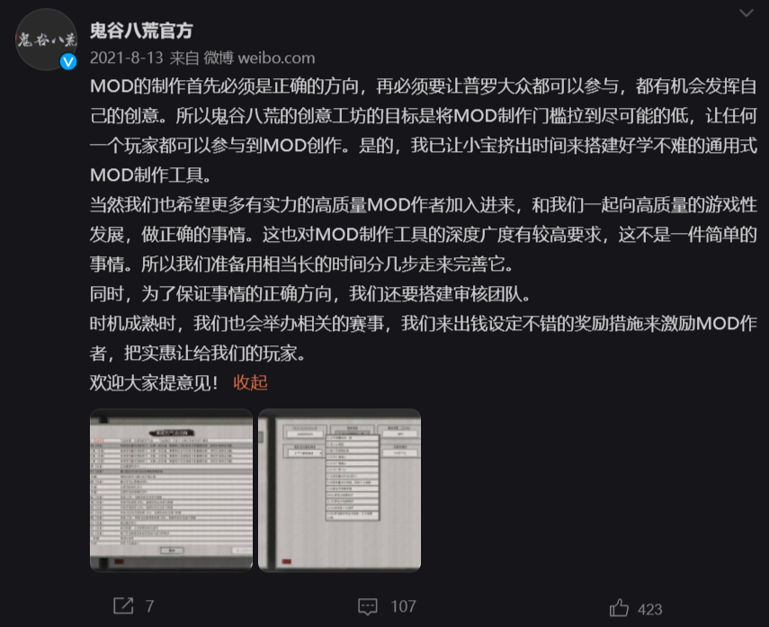另外在本月初对MOD问题做出回应的国产游戏还包括《中国式家长》和《了不起的休闲模拟器》,都表达了全力支持玩家社区,开放MOD权限的态度。