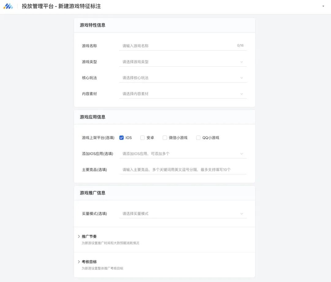 一方面是针对大数据系统能力的升级。腾讯广告对新游标注系统做了操作优化,让游戏厂商能够在新游预约阶段自主输入、完善游戏信息,进而加速系统学习,更快地找到目标用户群体。